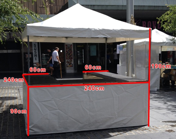 - A temporary food stall shall consist of a 3m x 3m marquee or similar, of which the roof and three sides are covered with reinforced plastic sheeting, vinyl or other approved material (or shall consist of an open food stall, which must comply with section 2 below).